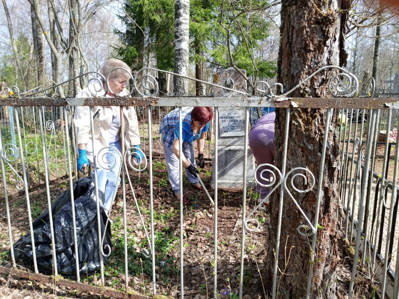 Свой вклад в общее дело внесли и участники клуба по интересам для граждан старшего поколения «Гармония». Они позаботились о захоронении заслуженного фронтовика — Владимира Ивановича Зрилина (р.п. Мухтолово). Старшие бережно очистили территорию от сухой травы, опавшей листвы и поросли кустарника.