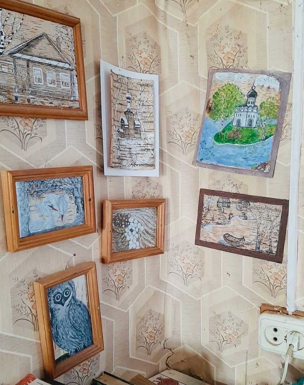 На её примере мы воочию убедились в том, как богат внутренний мир старшего поколения. После выхода на заслуженный отдых многие пенсионеры находят себя в художественной деятельности. Вот и Маргарита Владимировна не стала исключением. Около 10 лет назад, увидев простенький сюжет на бересте, написанный неизвестным художником, она вдруг поняла, какой полет фантазии может дать ей работа с ней. Пройти мимо и не попробовать она не смогла. Береста заворожила её своей неповторимостью, фантазия так и рисовала в голове все новые и новые сюжеты для картин.