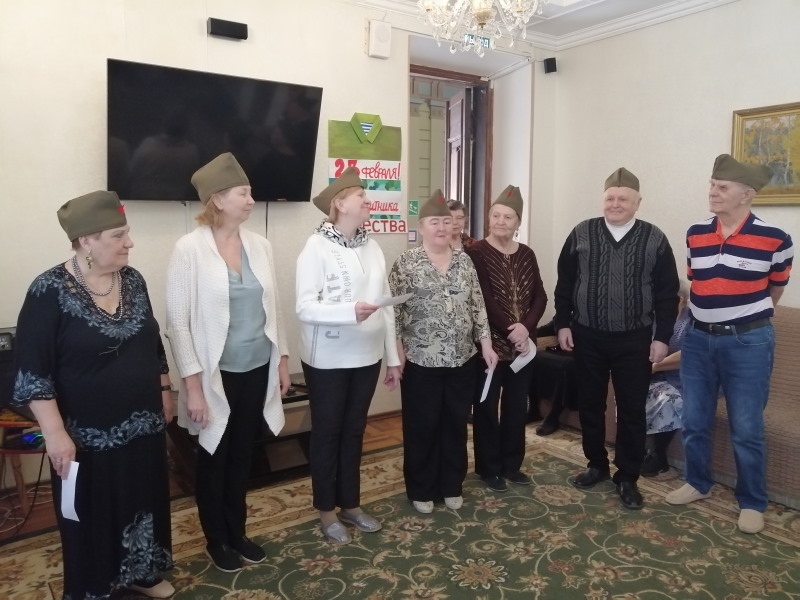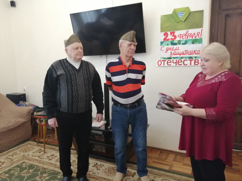 К Дню защитника Отечества в отделении дневного пребывания состоялось праздничное мероприятие «Мужчинам посвящается», на котором прозвучали патриотические песни: «Офицеры страны», «Парни не плачут», «Никто, кроме нас», «Срок пришёл служить», «Возвращайтесь» и другие.