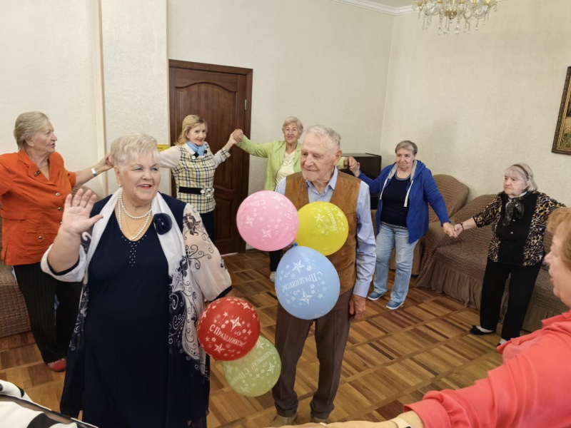 В этот день их поздравили и сотрудники Центра и отдыхающие пенсионеры. Именинникам были вручены подарки, а также они услышали немало тёплых слов и искренних пожеланий. По традиции все вместе водили «Каравай». Владимир Алексеевич порадовал гостей своим музыкальным талантом, исполнив несколько произведений на домре и гитаре.