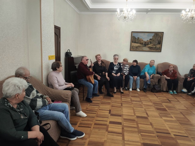 В честь праздника для отдыхающих пенсионеров состоялся приятный музыкальный подарок — выступление исполнителей бардовской песни Владимира Архипова и Ольги Телицыной. Тёплые и душевные песни в исполнении мастеров жанра создали атмосферу уюта и радости, подарив слушателям хорошие эмоции и заряд бодрости.