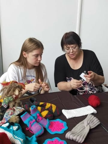 Тамара Ивановна провела мастер-класс по вязанию. Было приятно, что интерес к вязанию был не только со стороны старшего поколения, но и со стороны молодых людей. Так, они, впервые взяв спицы в руки, с большим желанием учились держать иголки и нить и кропотливо провязывали лицевые и изнаночные петли, осваивая для себя новое увлечение.
