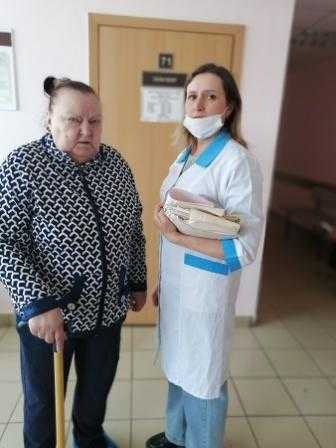 Медицинские сестры отделения социально-медицинского обслуживания на дому, сопровождают обслуживаемых в поликлинику к врачу и обучают пользованию техническими средствами реабилитации