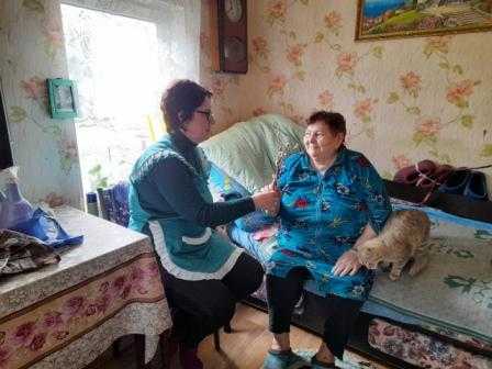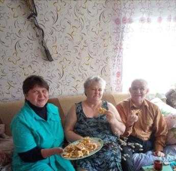 17.04.2022 социальные работники социально бытовых отделений принесли своим клиентам веточки вербы и поздравили с праздником "Вербное воскресение".