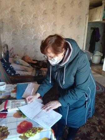 18.04.2022 года заведующие социально-бытовых отделений на дому провели выездную проверку качества оказания социальных услуг социальными работниками в п.Калиниха. В ходе проверки были проверены дневники социального работника, в которых  указаны все выполненные услуги и подтверждены подписью обслуживаемых.