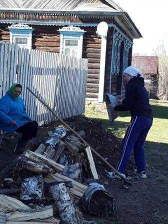22.04.2022 г. специалист ОССО Синотова Е.В. оказала срочную услугу по уборке придомовой территории одинокой жительнице д. Асташиха Русаковой Н.К.