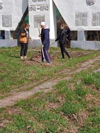 29.04.2022 г специалист ОССО Синотова Е.В. приняла участие в субботнике по уборке памятника погибшим воинам в с.Благовещенское с учениками 8-9 классов " Волонтеры Победы "
