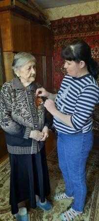 С 24 апреля по 09 мая проходит всероссийская акция «Георгиевская ленточка» Георгиевская ленточка – это символ и дань памяти тем, кто пал, спасая мир от фашизма; это благодарность людям, отдавшим все для фронта; это символ уважения к ветеранам и гордости за Великую Победу. Наши социальные работники вручили георгиевские ленточки ветеранам войны, находящимися на социальном обслуживании на дому, как официальный символ Дня Победы в России
