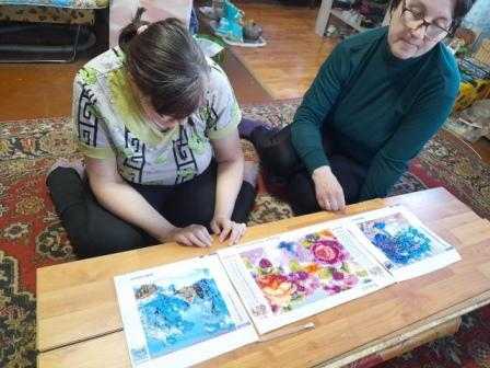 В ГБУ «ЦСОГПВИИ Воскресенского района» обслуживаются такие клиенты, для которых важны не только социально - бытовые услуги, но и досуговые мероприятия. И наш социальный работник помогает обслуживаемой, инвалиду детства, собирать алмазную мозаику. Техника алмазной мозаики не требует особых умений и знаний достаточно немного внимательности и усидчивости. Алмазная мозаика – это замечательный тренажер воображения и творческого мышления. Она способствует снижению уровня стресса и прекрасно успокаивает, развивает мелкую моторику рук. В результате получается декор для своего дома. Алмазная картина, прекрасно вписывается в интерьер. Может послужить подарком для родных и знакомых.